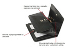 - zamknięcie na zatrzask, który zabezpiecza zawartość portfela przed wypadnięciem,
